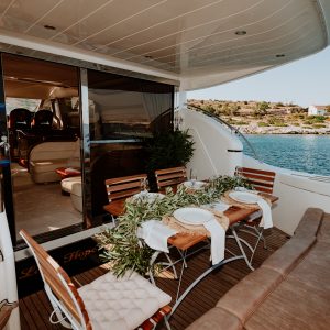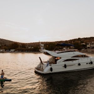As the afternoon heat starts to calm, we make our way back around the northwest curve around to the east once again. As we descend around the northeastern corner, a magical spot for one last swim could be Erimitis bay, where again the scenery will amaze you, and will make your glass of wine all the more worth it. With the sun slowly setting a golden colour around us, we seamlessly cruise back down entering the marina with a feeling of contentment of the day.