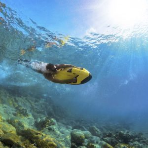 The SEABOB represents pure excitement accompanied by high performance, enhancing your snorkeling, freediving or scuba diving experience. It’s hydrodynamic shape provides for an astounding degree of agility in the water.